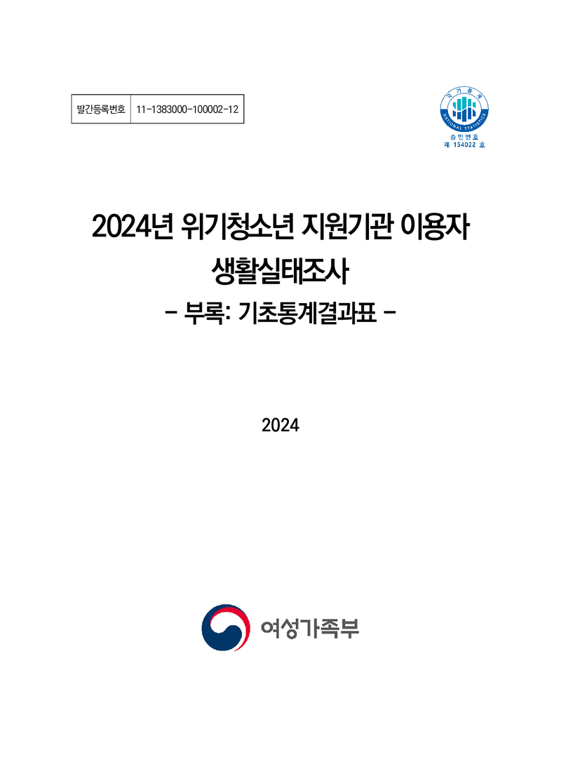 - 2024년 위기청소년 지원기관 이용자 생활실태조사 - 기초통계 결과표