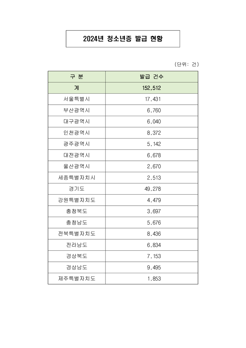 2024년 청소년증 발급 현황